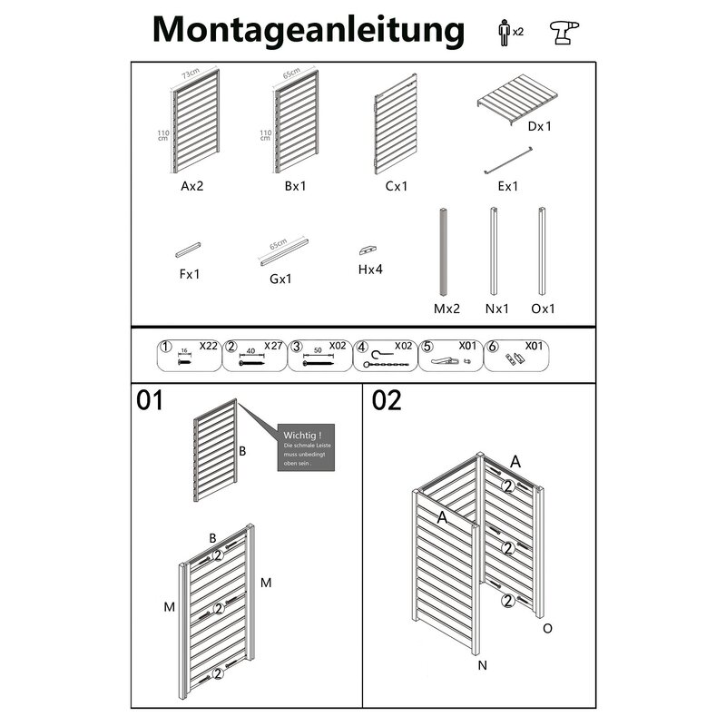 - PRAKTISCH: Bereits vormontiert und muss nicht mühsam aufgebaut werden, wie bei den in Einzelteile zerlegten. Sie sparen Zeit, Nerven und viel Arbeit. Es müssen nur ganze Elemente zusammengeschraubt werden. Um das Risiko des „Holzaufplatzens“ zu minimieren, empfehlen wir, dass Sie erst vorbohren und dann verschrauben.